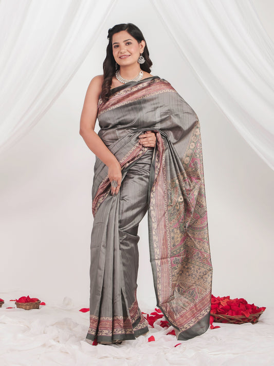 Sold outBanarasi Silk Digital Grey Saree
