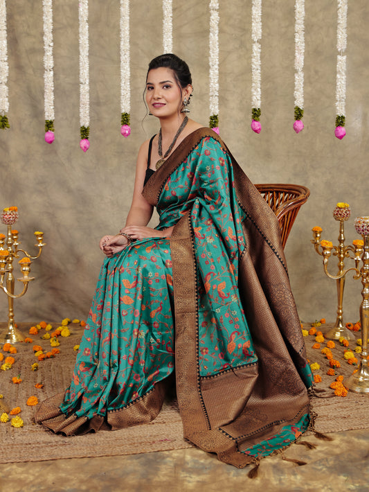 Sold outBanarasi Silk Floral Green Saree