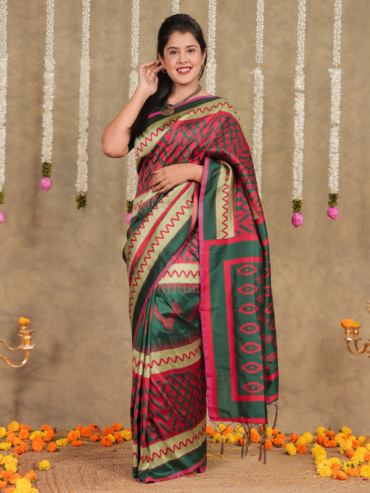 Banarasi Silk Ikat Saree Ikat Green Saree