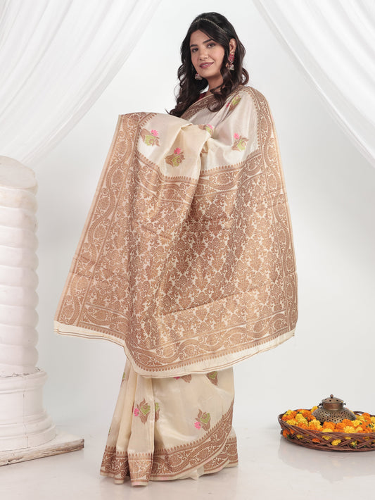 Sold outBanarasi Silk Brocade Cream Saree