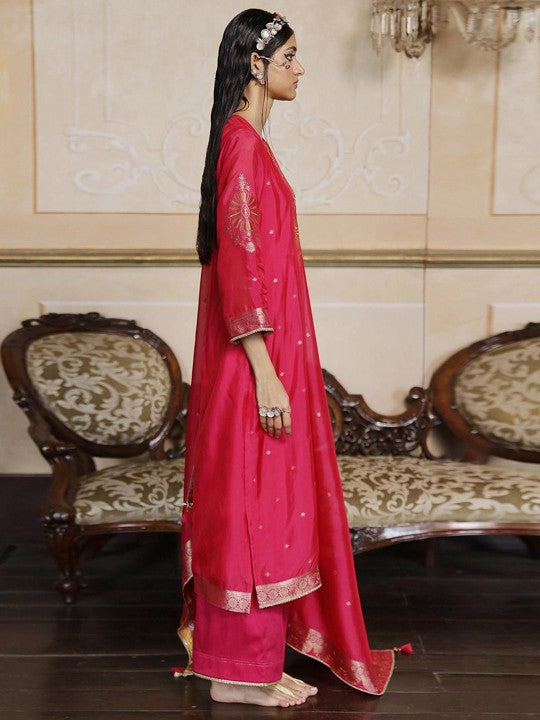 Ganga Women Floral Yoke Design Regular Raw Silk Kurta