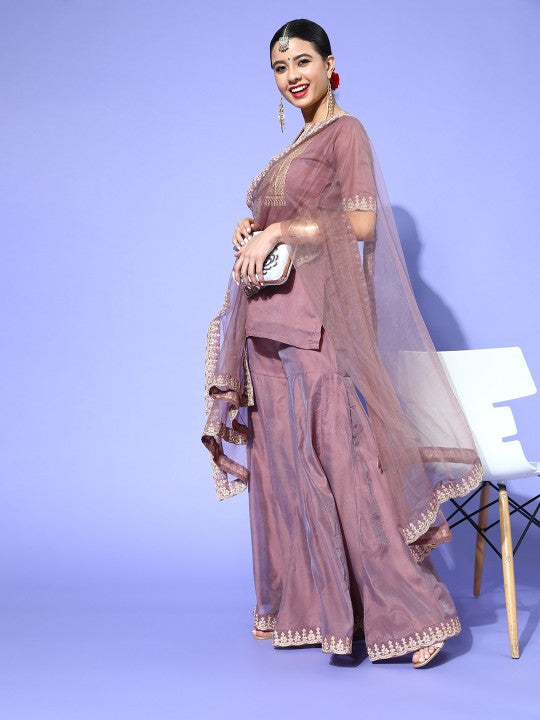 Inddus Women Floral Thread Sequinned Embroidered Kurta
