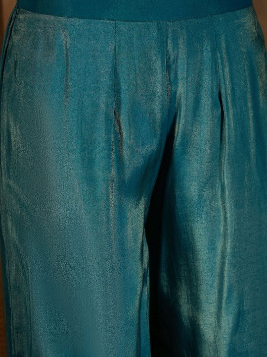 Inddus Floral Sequinned Embroidered Round Neck Kurta