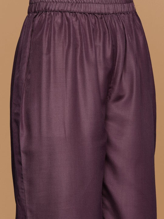 House of Pataudi Floral Yoke Design V Neck Zari Straight Kurta