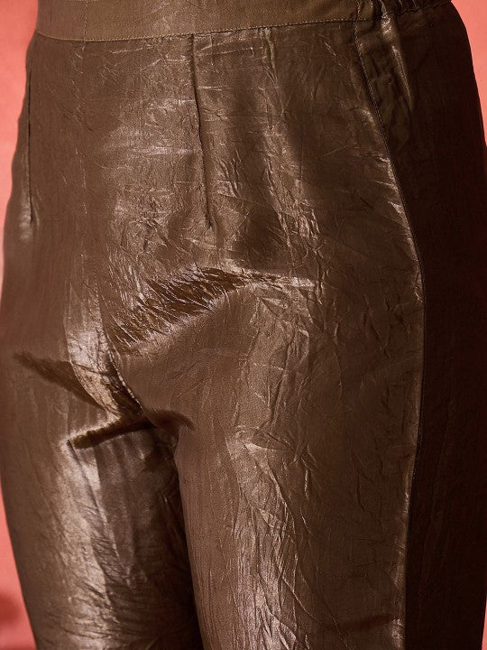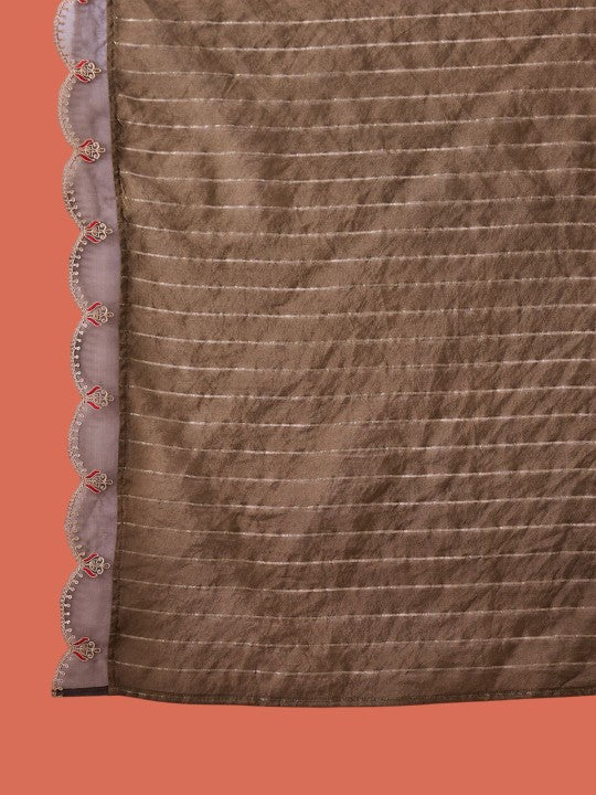 Floral Yoke Design Round Neck Sequinned A-Line Kurta