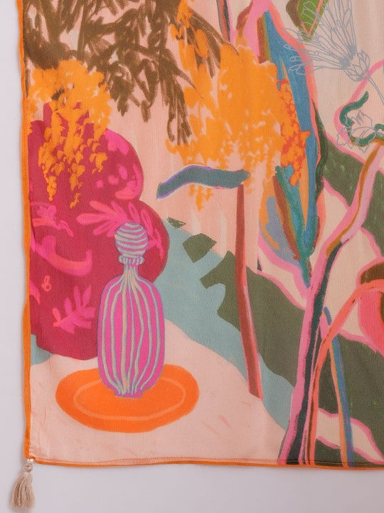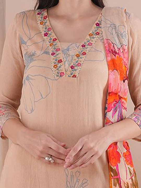 FASHOR Floral Printed Straight Beads and Stones Kurta