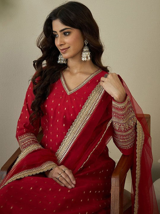 Inddus Women Ethnic Motifs Regular Chanderi Silk Kurta