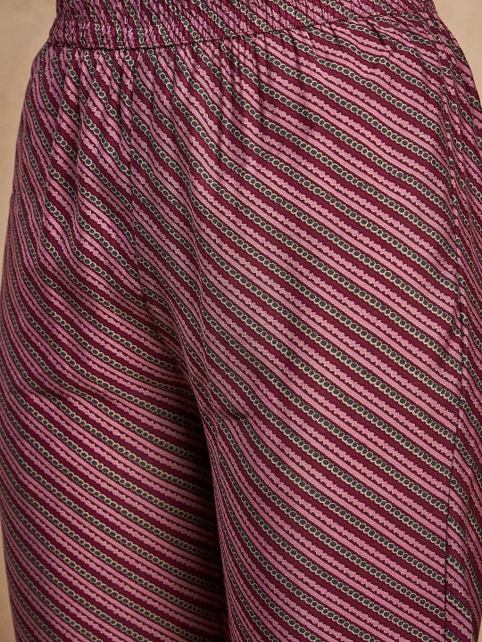 CHETI Women Floral Printed High Slit Thread Work Straight Kurta