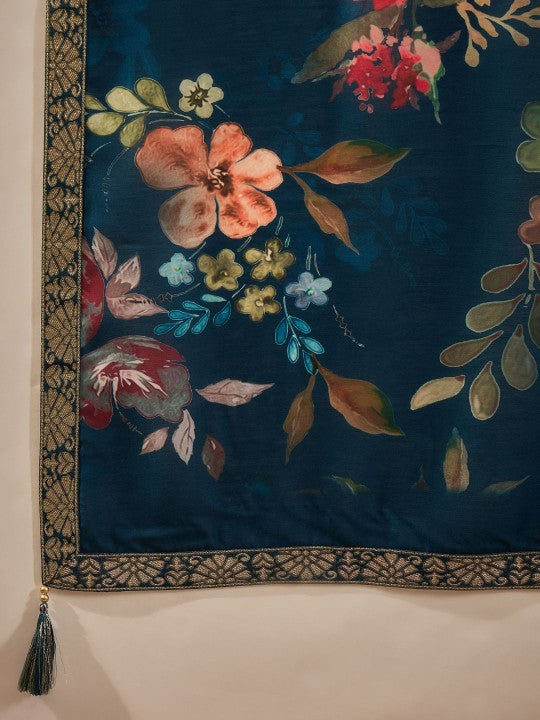 House of Pataudi Floral Printed Zari Pure Silk Anarkali Kurta