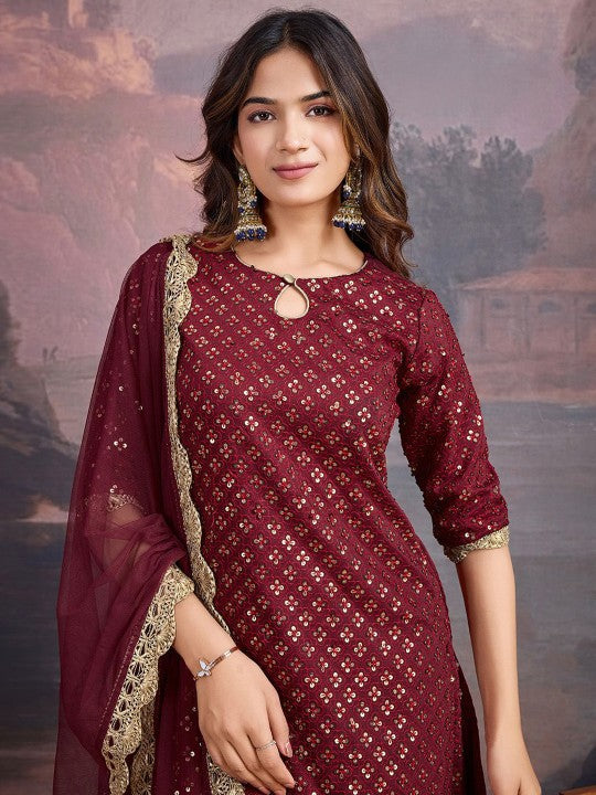 House of Pataudi Embroidered Keyhole Neck Kurta