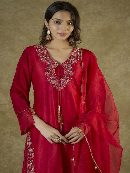 The Aarya Floral Embroidered Thread Work A Line Kurta