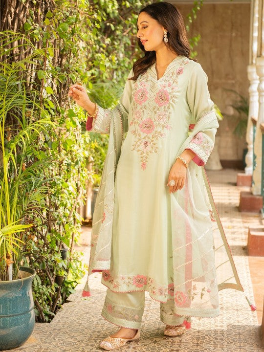 AJIESH OBEROI Floral Embroidered Regular Thread Work A-Line Kurta