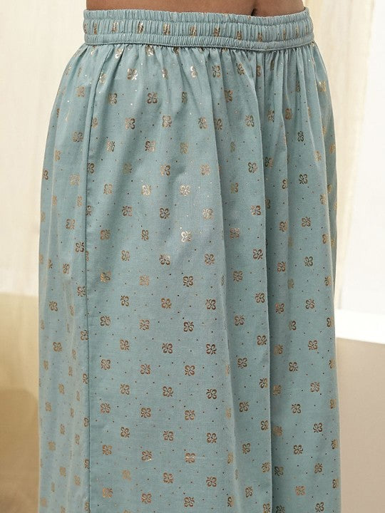 Biba Floral Embroidered Notch Neck Pure Cotton A-Line Kurta