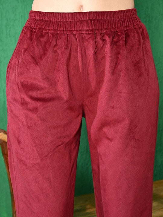 Floral Printed Winter Velvet Kurta