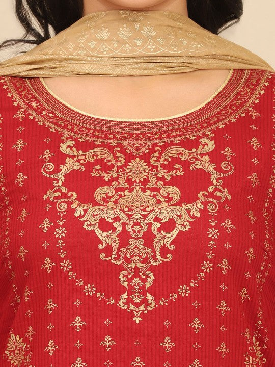 AURELIA Women Floral Printed Regular Pure Cotton Kurta with Skirt & With Dupatta