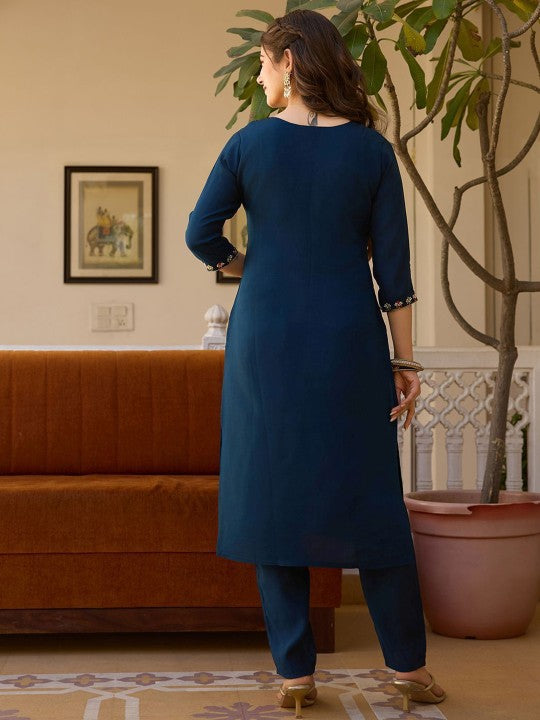 Yara Creation Ethnic Motifs Embroidered Sequinned Straight Kurta With Trousers & Dupatta
