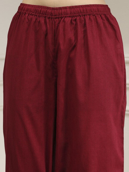 Biba Embroidered Notch Neck Thread Work Pure Cotton Straight Kurta With Palazzos & Dupatta