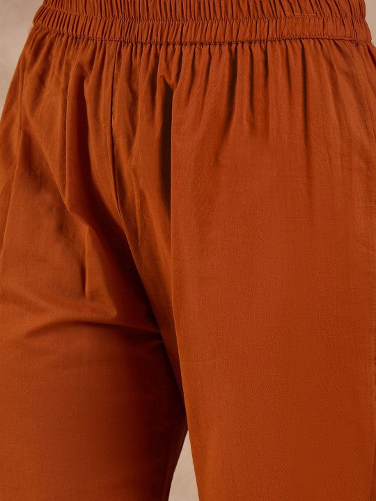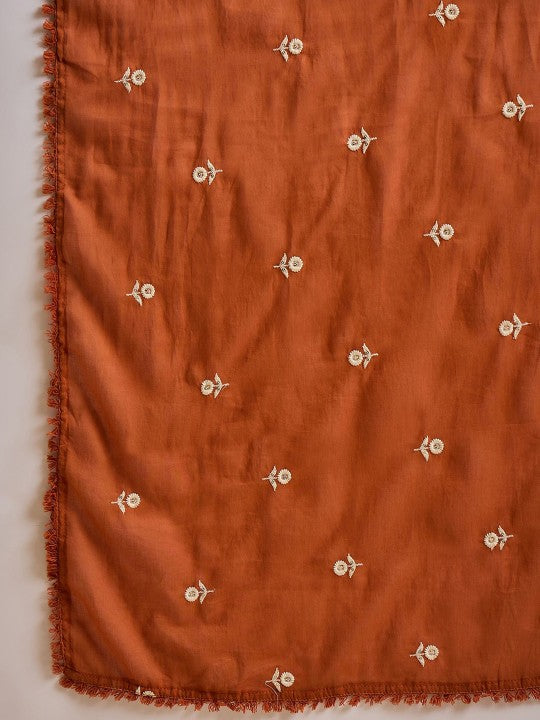 all about you Floral Embroidered V-Neck Thread Work Anarkali Kurta With Trouser & Dupatta