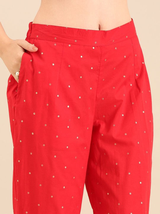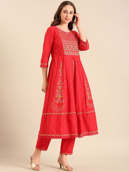 Anouk Women Embroidered Regular Thread Work Pure Cotton Kurta with Trousers & With Dupatta