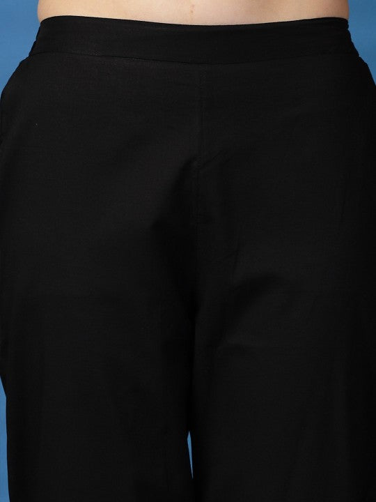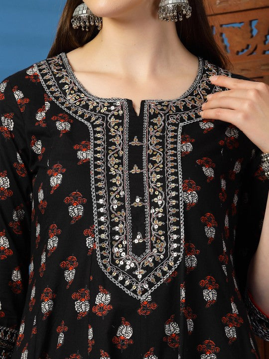 Floral Printed Thread Work Pure Cotton Anarkali Kurta with Trouser & Dupatta