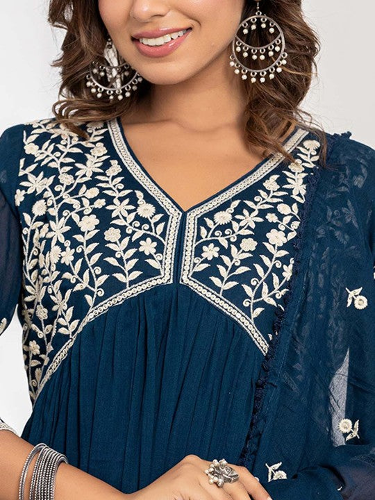 CHETI Women Ethnic Motifs Embroidered Anarkali Kurta with Trousers & Dupatta