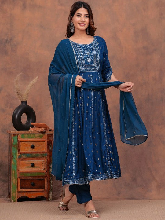 TOULIN Floral Printed Zari Anarkali Kurta With Palazzos & Dupatta
