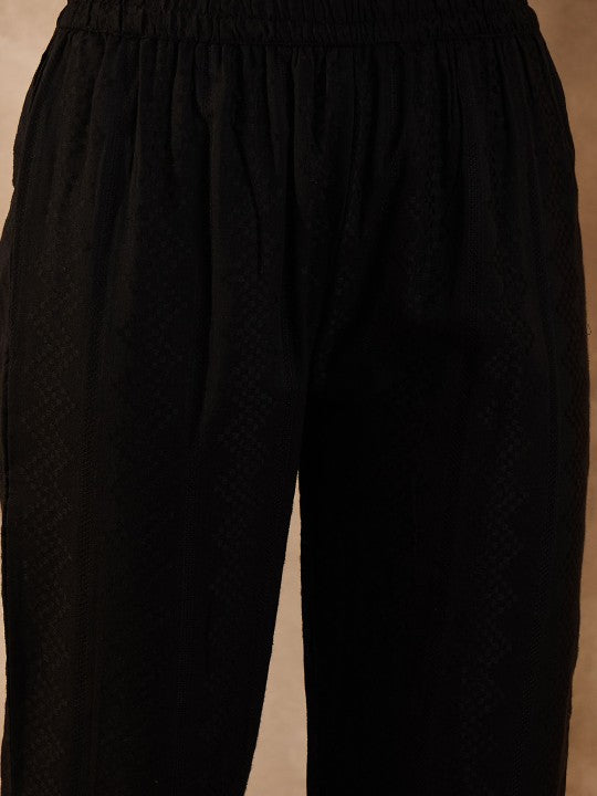 CHETI Floral Embroidered Thread Work Organic Cotton Straight Kurta With Trousers & Dupatta