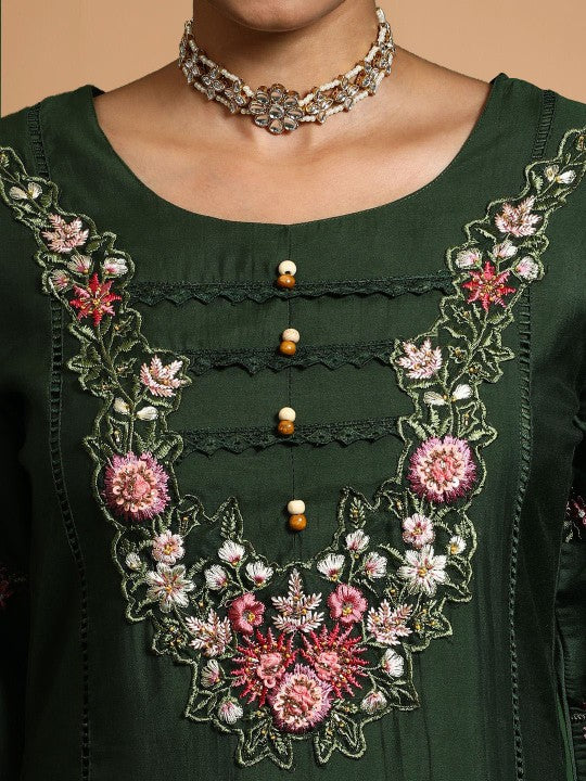 House of Pataudi Embroidered Thread Work Pure Cotton Kurta & Trousers With Dupatta