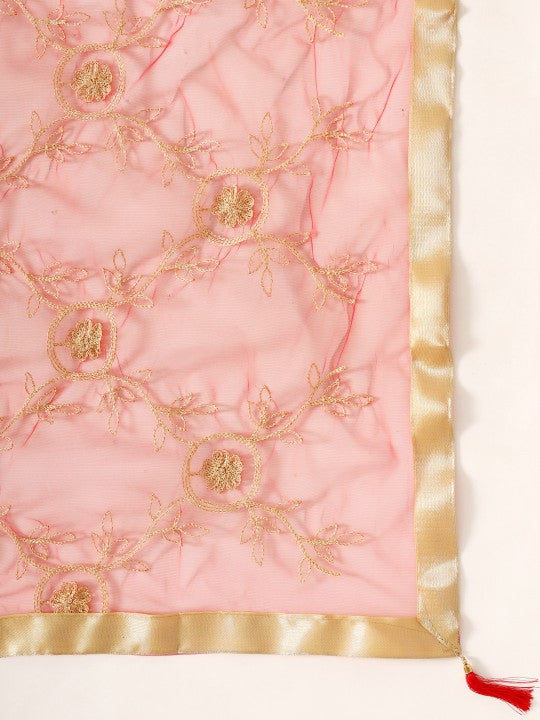 Fabriko Women Red Ethnic Motifs Printed Gotta Patti Kurta with Palazzos & With Dupatta