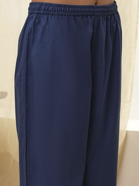 Biba Floral Embroidered Pure Cotton Anarkali Kurta With Palazzos And Dupatta