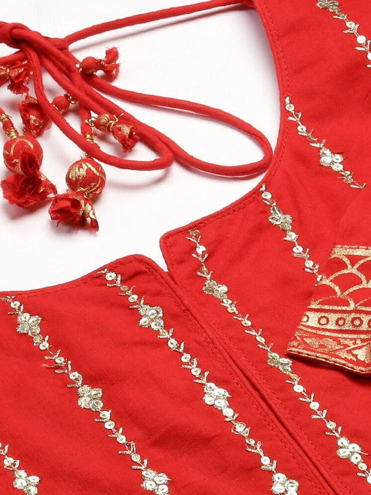 Biba Striped Embroidered Beads & Stones Pure Cotton Anarkali Kurta with Churidar & Dupatta