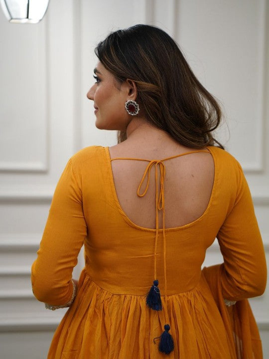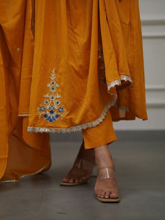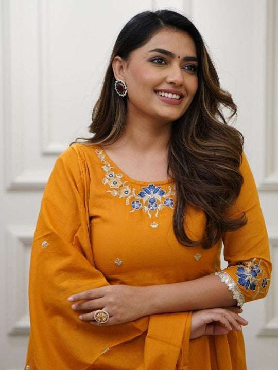 DEVATITHI Women Solid Embroidered Kurta with Trousers & Dupatta