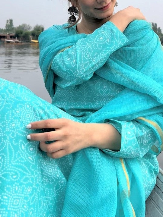 DIMPLE DESIGN STUDIO Bandhani Printed Pure Cotton Straight Kurta with Trousers & Dupatta