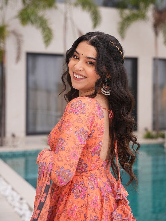 Tanhai Women Floral Printed Regular Pure Cotton Anarkali Kurta with Trousers & Dupatta