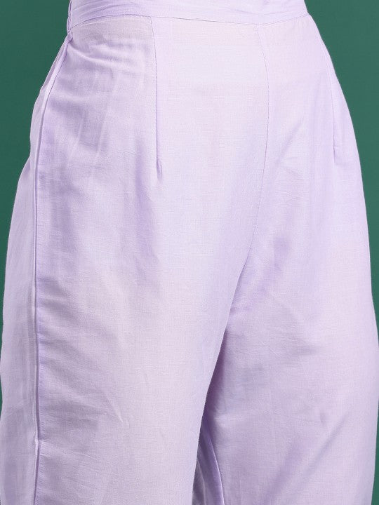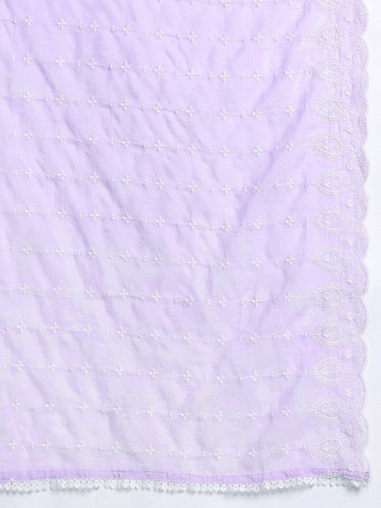 Indo Era Floral Embroidered Thread Work Pure Cotton Kurta With Trousers & Dupatta