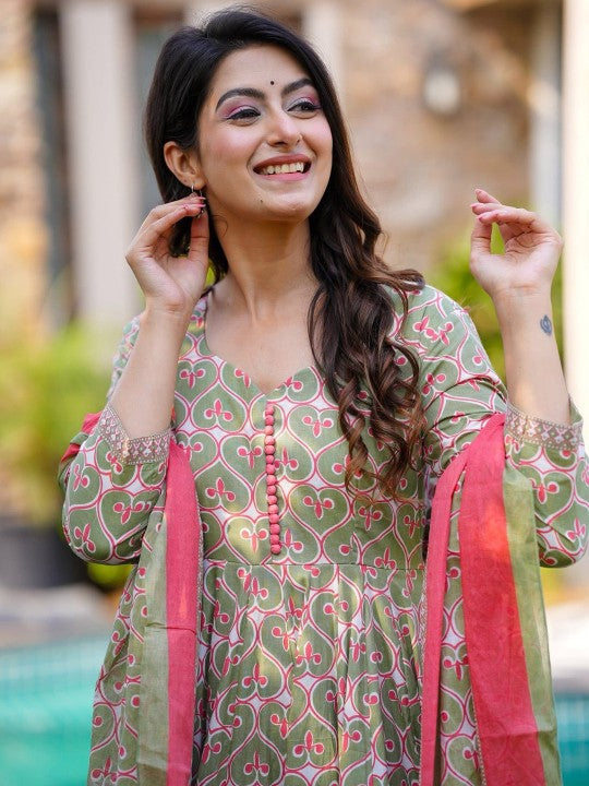 Idaho Clothing Women Floral Drape Pure Cotton Suit Set