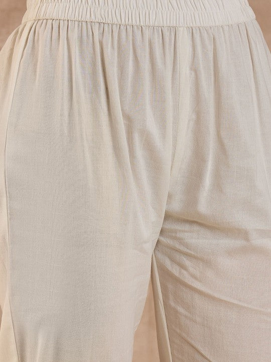 CHETI Floral Embroidered Pleated Thread Work Kurta With Trousers & Dupatta