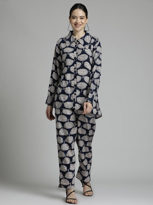 Jaipur Kurti Ethnic Printed Blue Co-ord Set