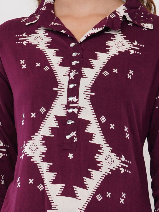 dhartii Summer Garden Abstract Printed Ethnic Tunic With Trouser Co-Ords