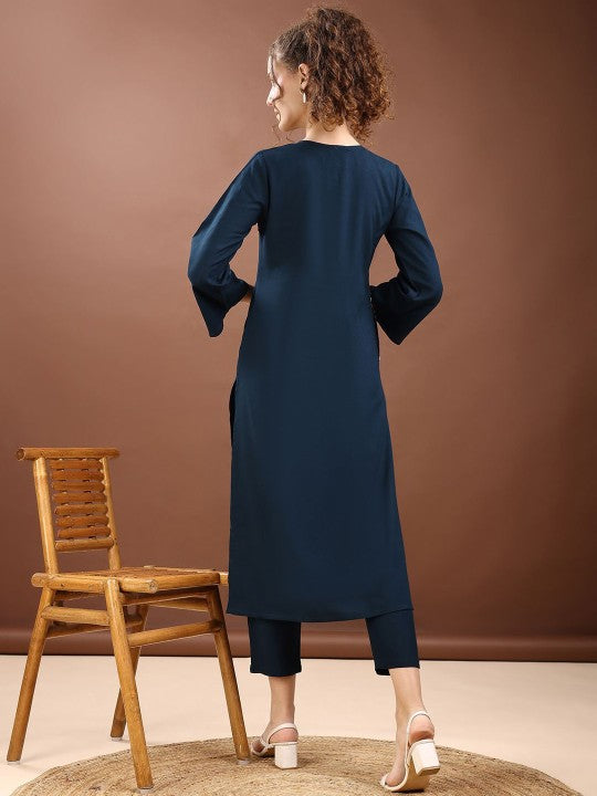 Tikhi Imli Embroidered Round Neck Kurta With Trousers Co-Ords