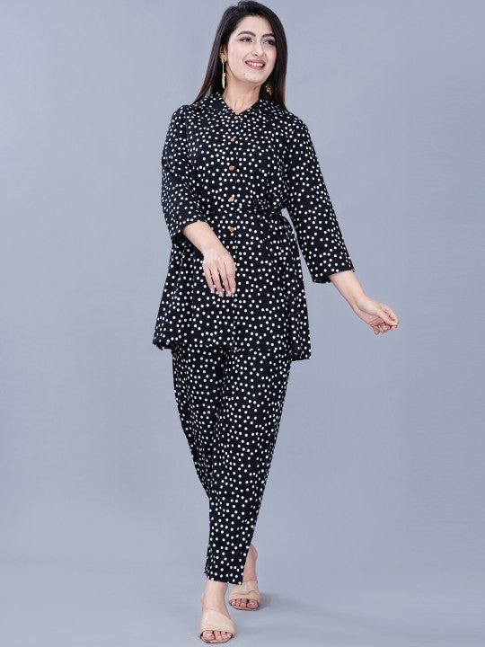 ao services Polka Dot Print Shirt Collar Co-Ords Set