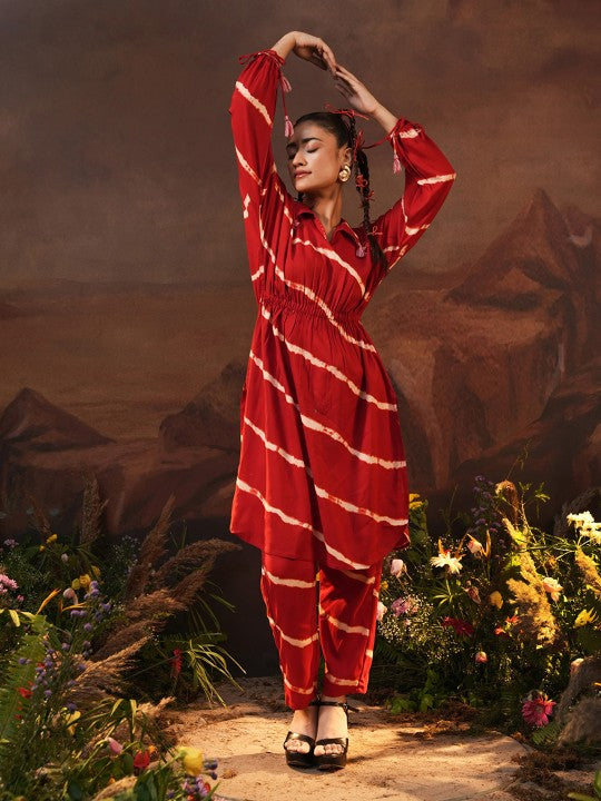 Ishin Tie & Dye Dyed Printed V-Neck Tunic Top and Trouser Co-Ords