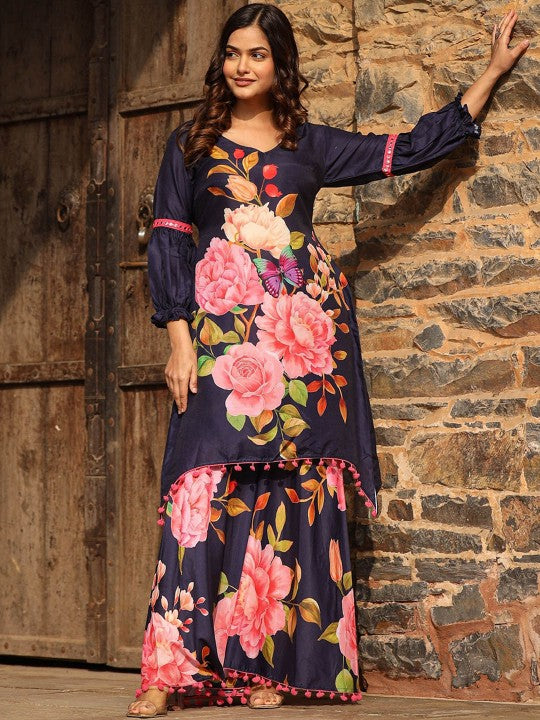 ASHEERA Printed V-Neck Pure Cotton Tunic & Palazzos