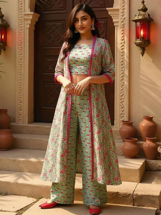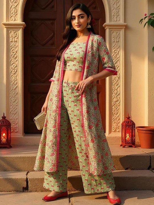 SZN Printed Top & Palazzo With Jacket Co-Ords