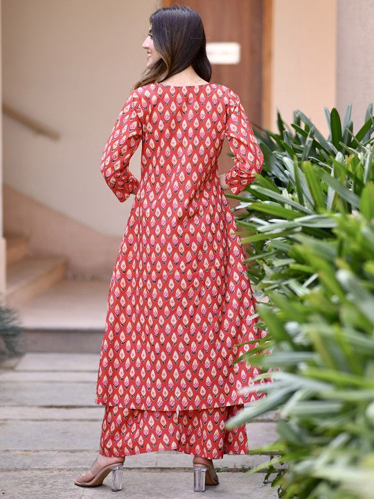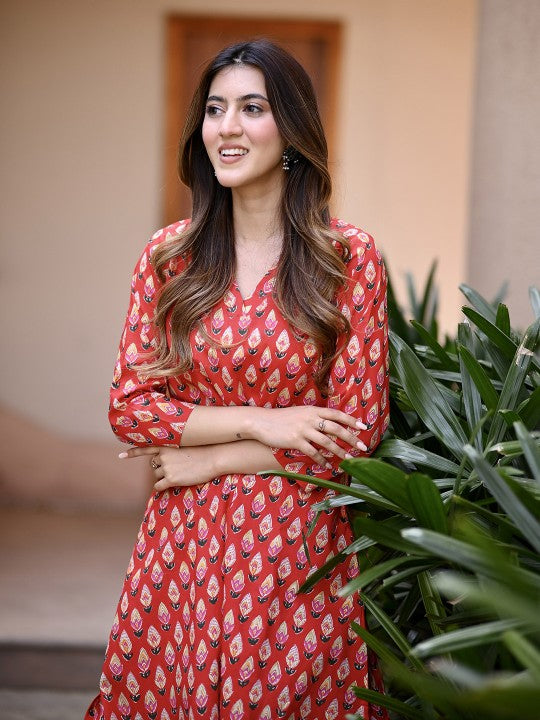 DIMPLE DESIGN STUDIO Floral Printed V-Neck Three-Quarter Sleeves Pure Cotton Co-ords Set