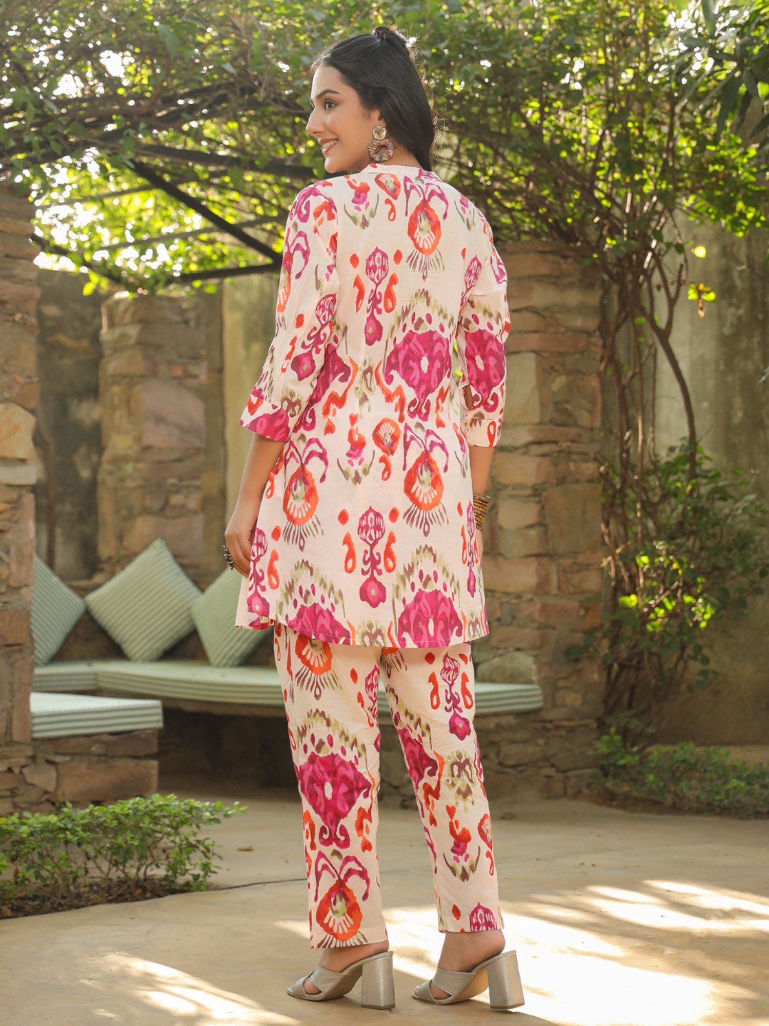 Women Multi Floral Printed Pure Cotton Tunic with Trousers (Set of 2)