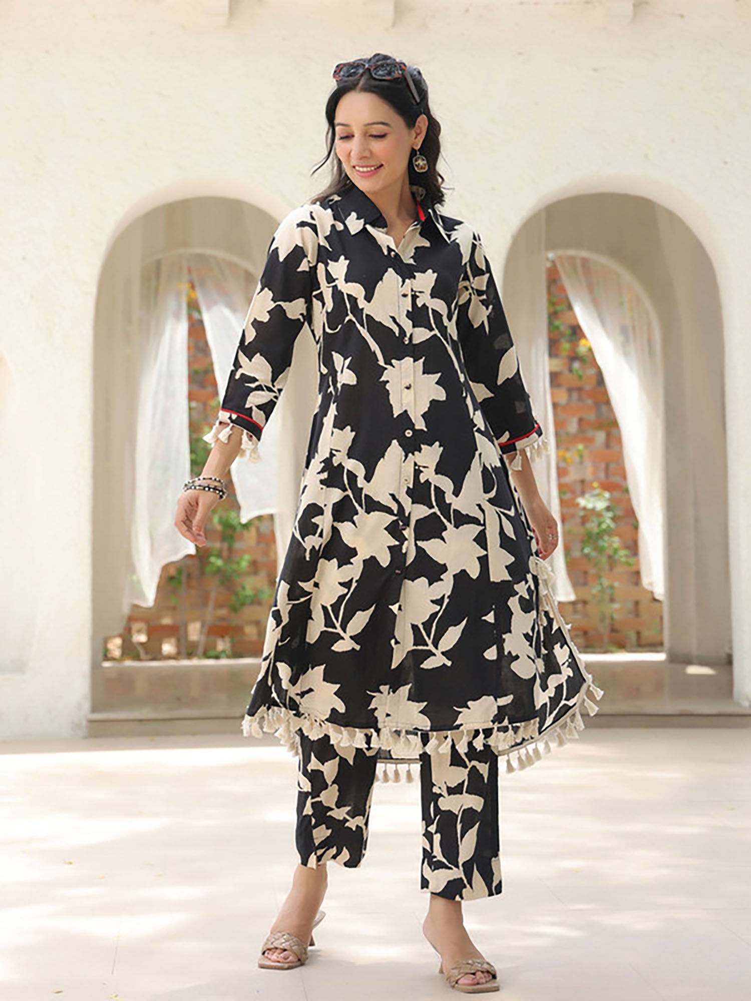 Floral Printed Shirt Collar Pure Cotton Co-Ord (Set of 2)