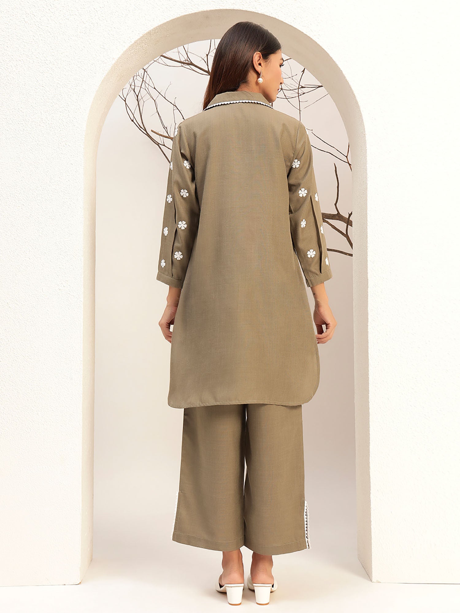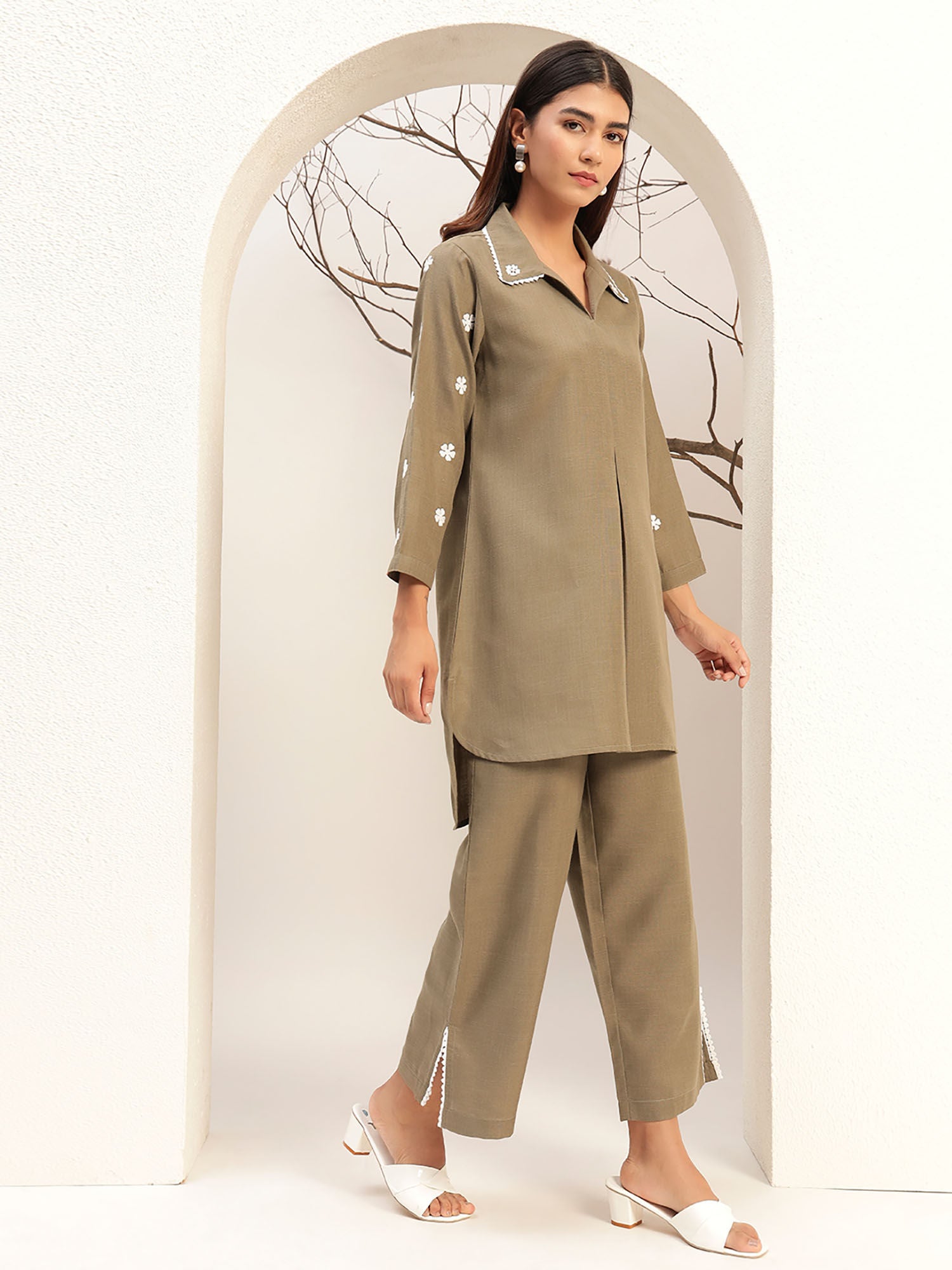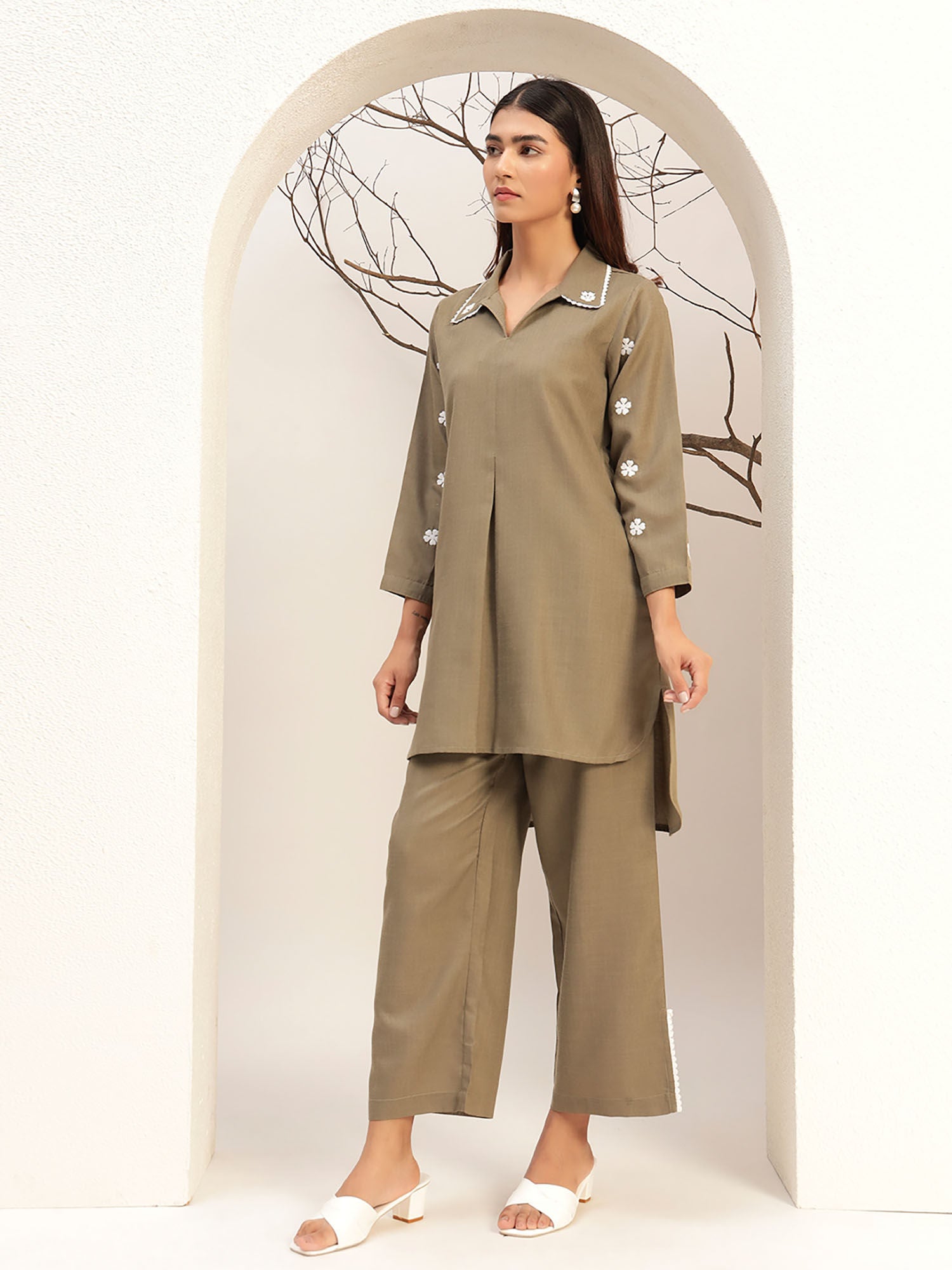 Grey Color with Collar Neck Caual Tunic with Trouser Co-Ord Set Of 2