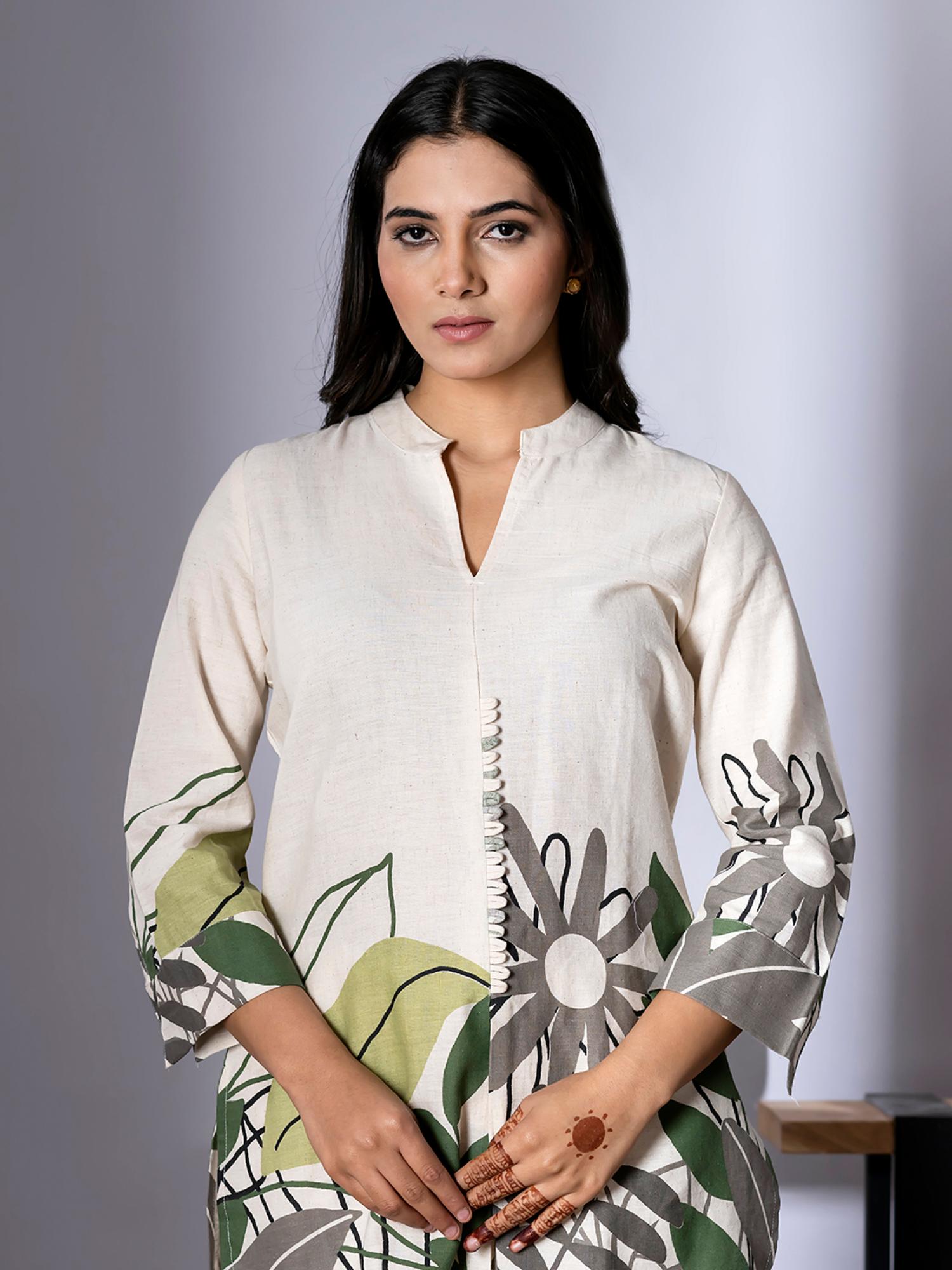 Curved Style Cotton Flex Off White Co-Ord (Set of 2)