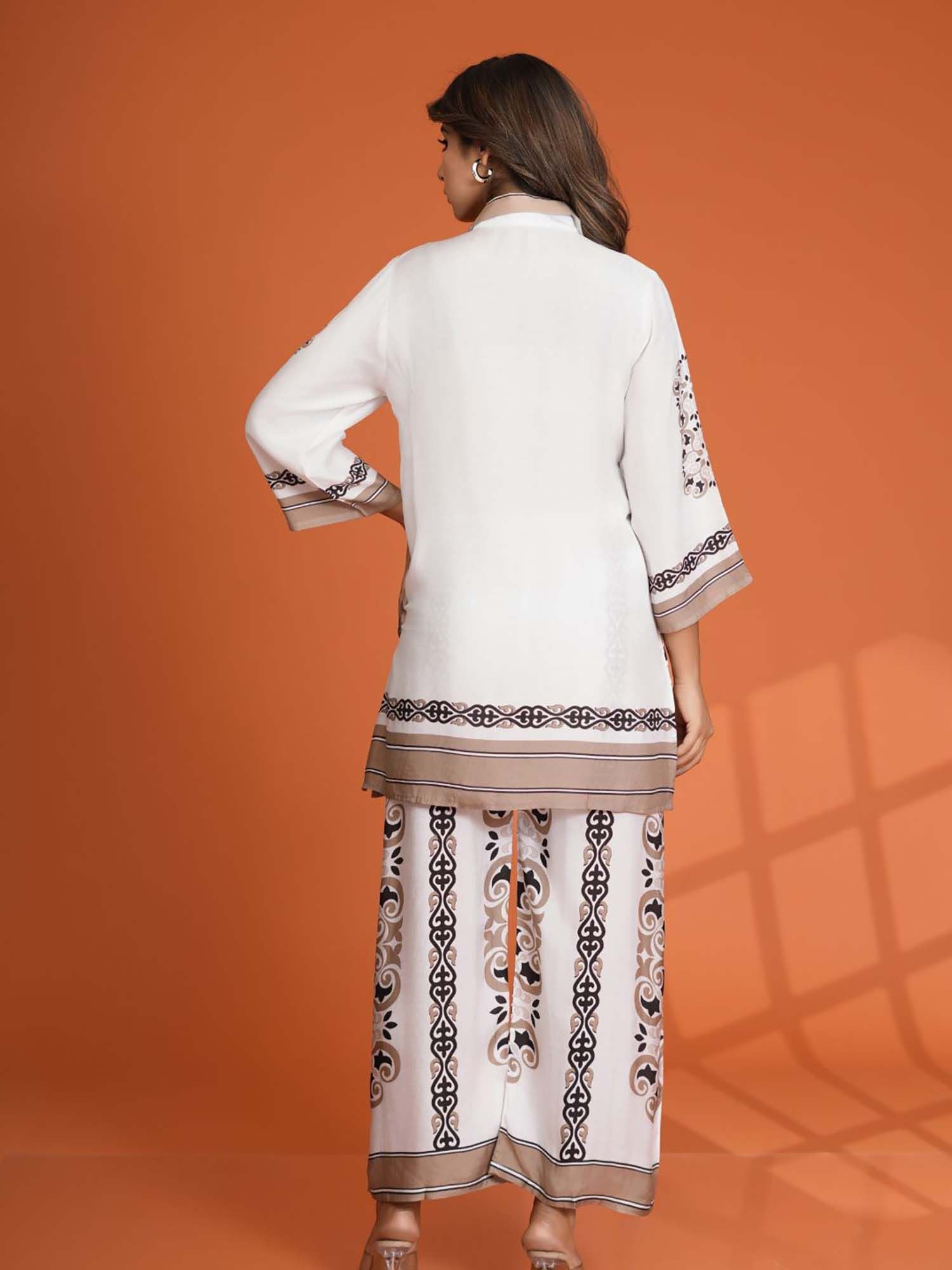 White & Brown Floral Placement Print Co-Ord (Set of 2)